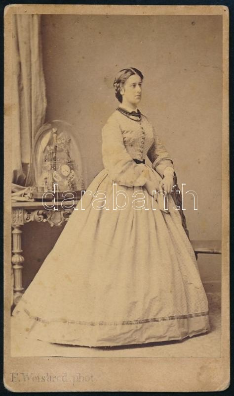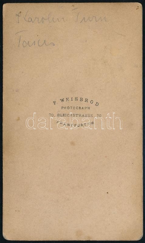 cca 1870 Ilona Karolina Terézia, későbbi Thurn und Taxis hercegné (1834-1890) Erzsébet (Sisi) osztrák császárné és magyar királyné legidősebb nővére. F. Weissbort fotó / Countess Thurn und Taxis, sister of Empress Elisabeth (Sisi) 6x11 cm