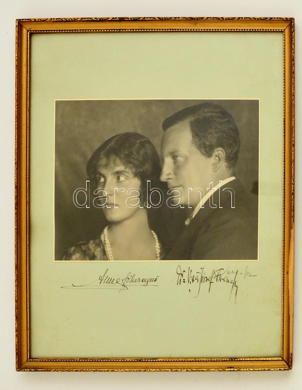 cca 1924 Anna szász főhercegnő (1903-1976) és Habsburg József Ferenc főherceg (1895-1957) portréja, alatta aláírásaikkal és a fotós szignójával (Veres ?), üvegezett fa keretben, 17×23 cm /