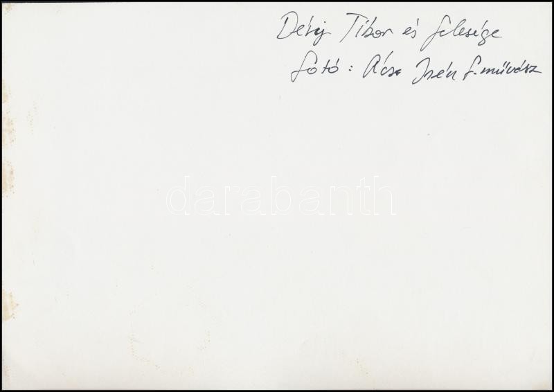 cca 1970 Déry Tibor(1894-1977) író és felesége, Ács Irén fotója, jelzé... https://www.darabanth.com/de/28-Gross-Auktion/28.1/Andere-Sammelgebiete/Foto~11241/cca-1970-Dery-Tibor1894-1977-iro-es-felesege-Acs-Iren-fotoja-jelzes-nelkul-16x23-cm~II1652190
