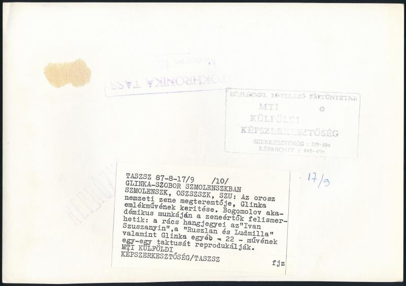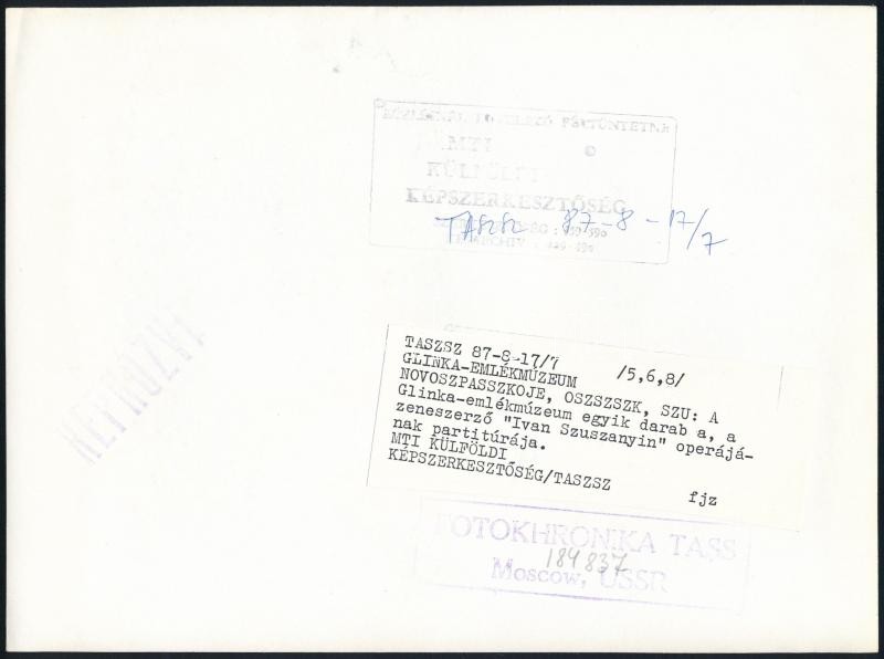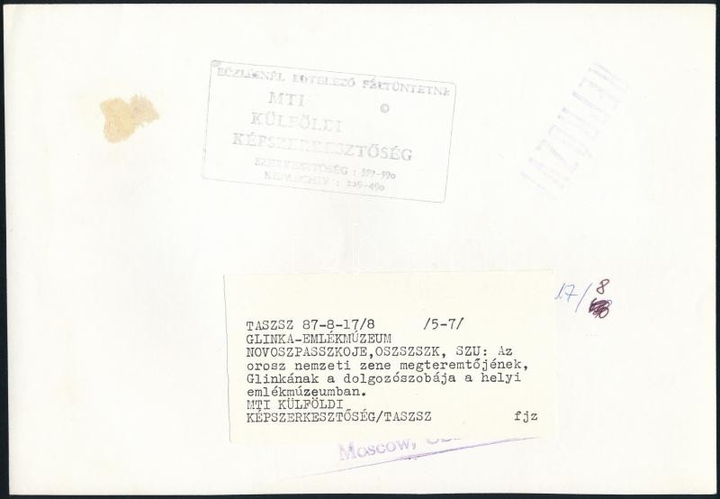 cca 1987 Glinka - az orosz nemzeti zene megteremtője - emlékmúzeumból ... https://www.darabanth.com/de/28-Gross-Auktion/28.1/Andere-Sammelgebiete/Foto~11241/cca-1987-Glinka--az-orosz-nemzeti-zene-megteremtoje--emlekmuzeumbol-3-db-feliratozott-fenyke~II1664536