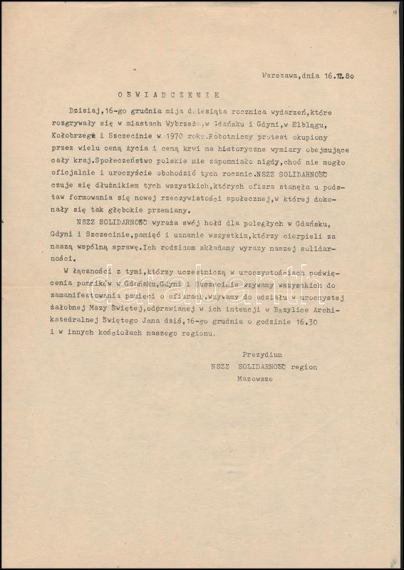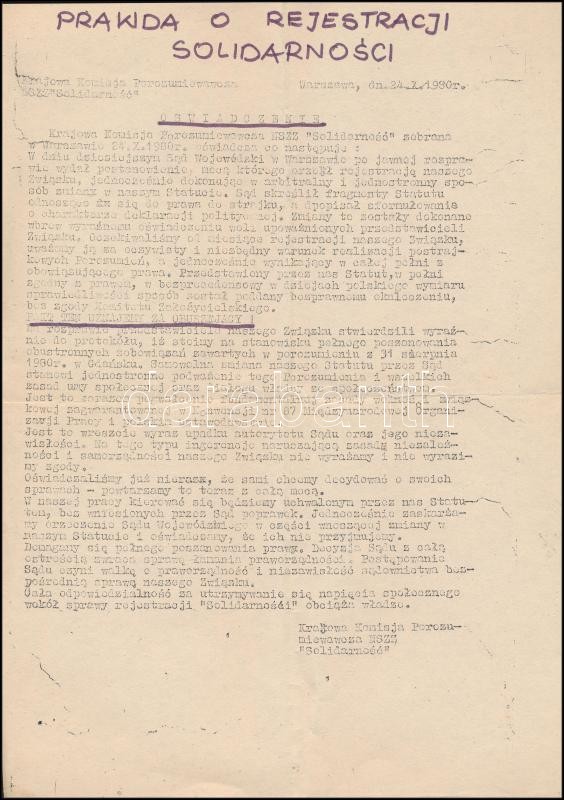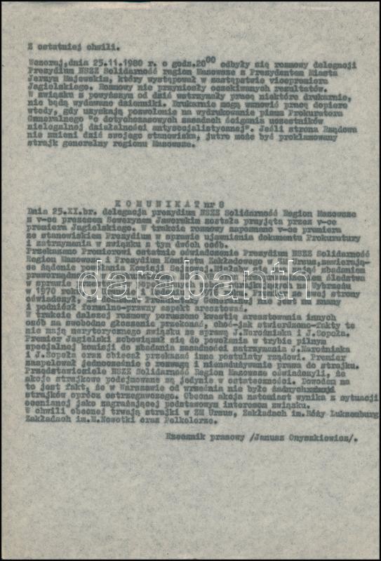 1980 Gdańsk-i hajógyári sztrájk iratai, 7 db / Gdańsk, strike ducument... https://www.darabanth.com/de/28-Gross-Auktion/28.1/Andere-Sammelgebiete/Historische-Dokumenten-Handschriften~11297/1980-GdaC584sk-i-hajogyari-sztrajk-iratai-7-db-GdaC584sk-strike-ducuments~II1652243