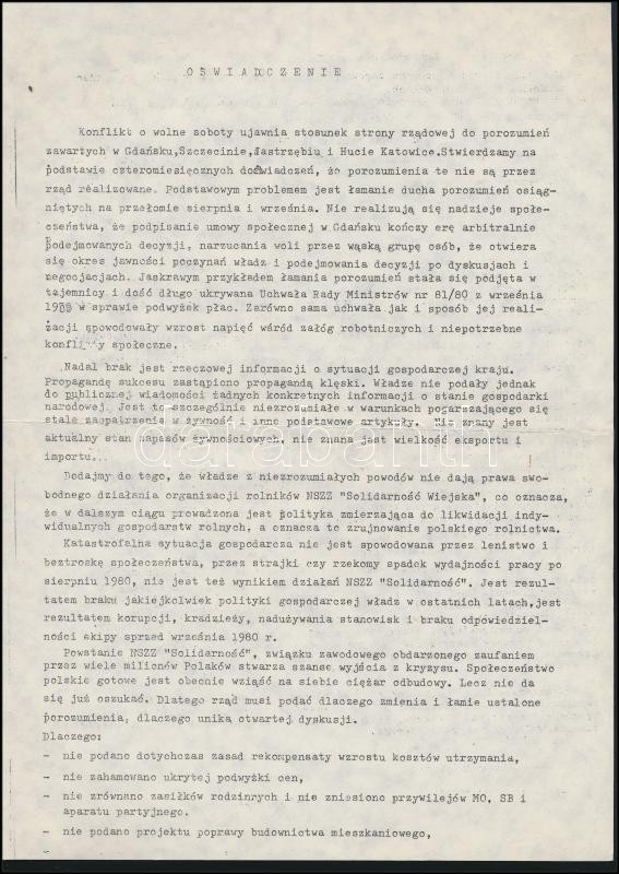 Beschreibung: 1980 Gdańsk-i hajógyári sztrájk iratai, 7 db / Gdańsk, strike ducuments