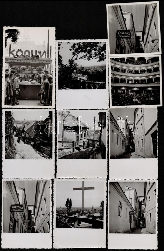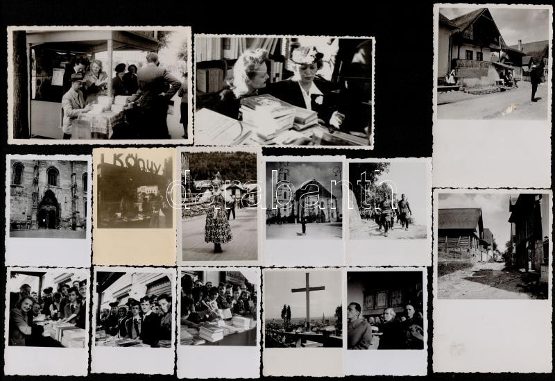 1941 Az erdélyi Magyar Könyvnap Kolozsváron 1941. június 9-11., Rácz Vali (1911-1997) kolozsvári utca részletekkel, népviseletes erdélyiekkel, vonuló katonákkal, Móricz Zsigmonddal, Rácz Valival, Nyírő Józseffel, nézelődő emberekkel Szentgericei Jakab Jenő sátránál a képeken, 41 db fotó, 13x8 cm és 7x6 cm közötti méretben.