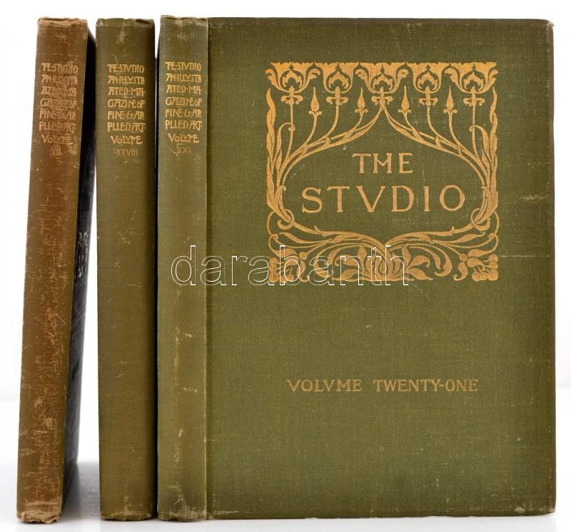1896-1903 a The Studio művészeti folyóirat három évfolyama (7., 21., 28.), évfolyamonként egybekötve számos szecessziós illusztrációval, érdekes írásokkal, kissé kopott vászonkötésben, jó állapotban / In English, with Art Nouveau illustrations, slightly worn linen binding, in good condition