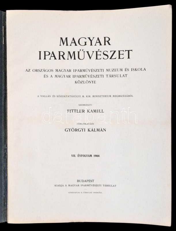 1904 A St. Louisi Világkiállítás. Magyar Iparművészet, Szerk.: Fittler Kamill, Főmunkatárs: Györgyi Kálmán, VII. évf. 6 szám. Bp., Magyar Iparművészeti Társulat, Athenaeum Rt.-ny. Kiadói papírkötés, gazdag képanyaggal illusztrálva, rengeteg korabeli reklámmal, jó állapotban