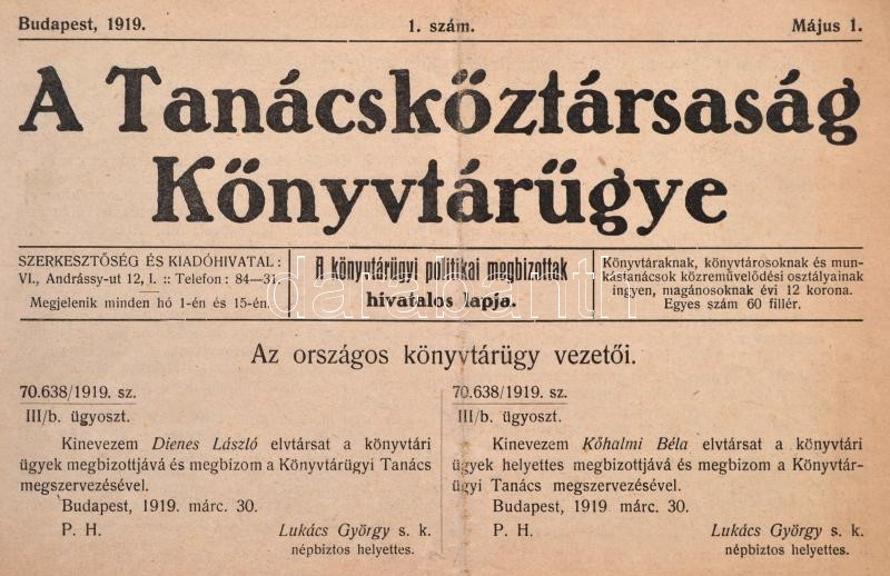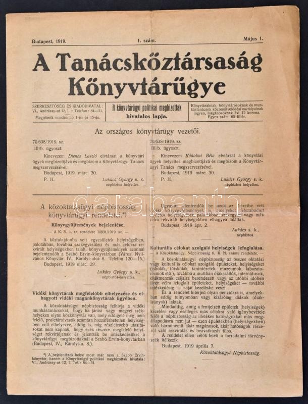 1919 A Tanácsköztársaság könyvtárügye 1. évf. 1. lapszáma (május 1.), ... https://www.darabanth.com/de/28-Gross-Auktion/28.1/Andere-Sammelgebiete/Periodika~11656/1919-A-Tanacskoztarsasag-konyvtarugye-1-evf-1-lapszama-majus-1-erdekes-irasokkal~II1680956