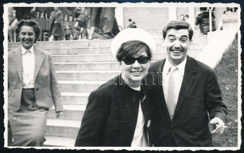 Beschreibung: 1963 Ruttkai Éva (1927-1986) és Gábor Miklós (1919-1998) fotója, a hátoldalon a két művész dedikációjával, dátumozva, 8x13 cm.
