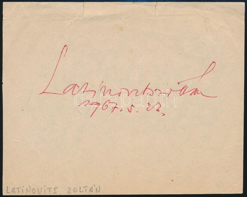 Beschreibung: 1967 Latinovits Zoltán (1931-1976) és Ruttkai Éva (1927-1986) aláírásai papírlapon