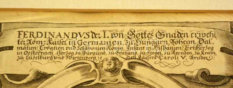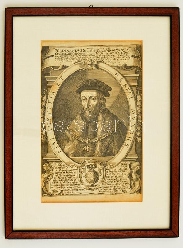 cca 1700 Engraved portrait of Emperor Ferdinand I. After Martin Rota. In paspartu, in glazed frame. 28x18 cm, Frame size 40x31 cm