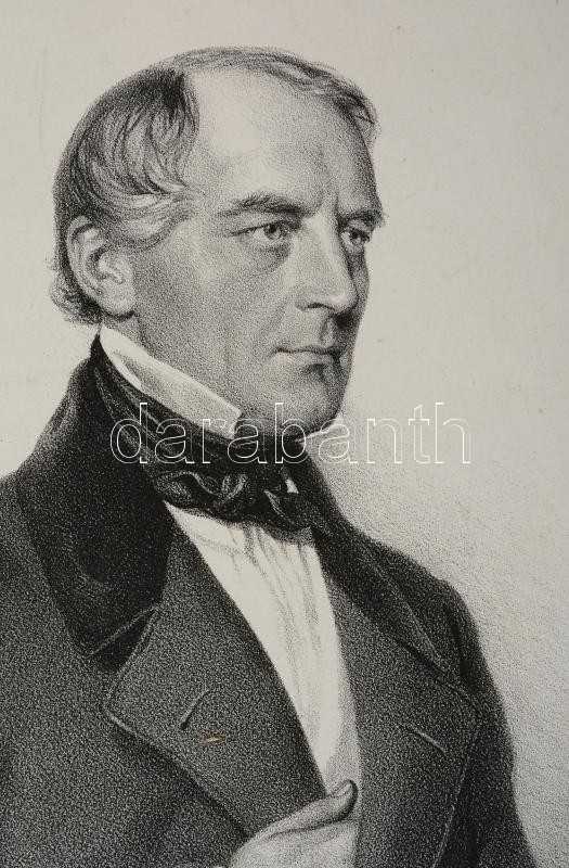 cca 1850 Karl Ludwig von Bruck báró (1798-1860) osztrák pénzügyminiszter nagyméretű kőnyomatos portréja. Josef Kriehuber jelzett kőrajza. / cca 1850 Large lithographic image of Austrian minister of finance Karl Freiherr von Bruck. Kriehuber signed. 30x43 cm.