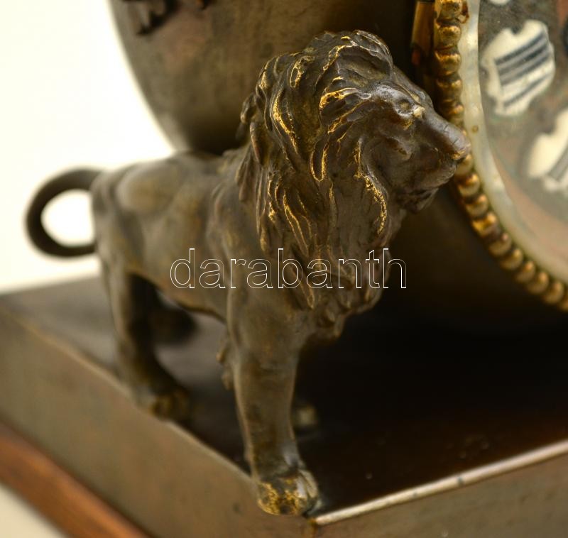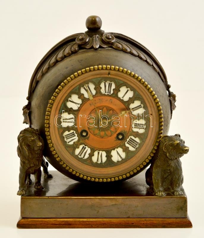 XIX. sz. Asztali óra Paris B8H jelzéssel, bronz oroszlán és medve figurákkal. Nem működik / XIX. sz. Table watch with bronze bear and lion figures. Does not work. 23 cm