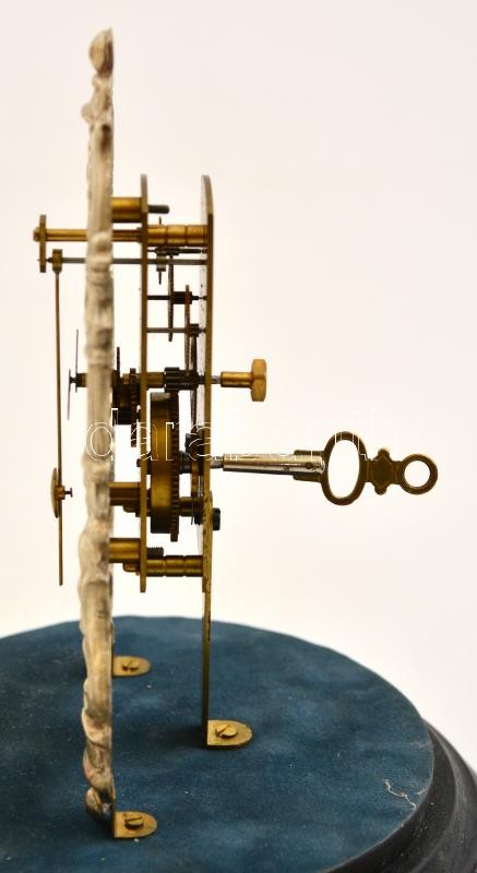 XX. század. Zappler óra búra alatt, kézzel készült ezüst díszítéssel, felhúzókulcssal, hibátlanul működő szerkezettel, üveg búra alatt / 20th century zappler clock under glass with silver ornament. With winding key. Works well. 19 cm