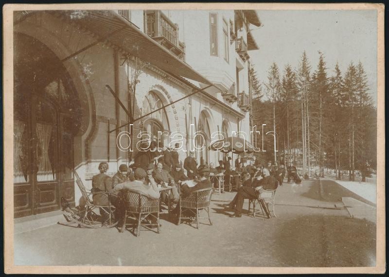 1906 február. Tátrafüredi vendégek sziesztája feliratozott nagyméretű ... https://www.darabanth.com/de/28-Gross-Auktion/28.1/Andere-Sammelgebiete/Ungarische-und-auslandische-Stadtbilder~11300/1906-februar-Tatrafuredi-vendegek-sziesztaja-feliratozott-nagymeretu-kemenyhatu-foto-T~II1679981
