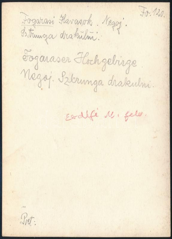 cca 1910 Fogarasi-havasok, Negoj, Erdélyi Mór felvétele, hátulján feliratozva, 11,5×16 cm / cca 1910 Munţii Făgăraş, Vârful Negoiu, vintage photo, with notes on its back, 11,5×16 cm