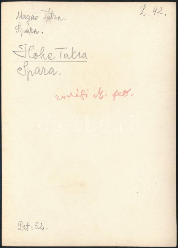 cca 1910 Magas-Tátra, a Spara-hágó, Erdélyi Mór felvétele, hátulján feliratozva, 11,5×16 cm / cca 1910 Vysoké Tatry, the Špára, vintage photo, with notes on its back, 11,5×16 cm