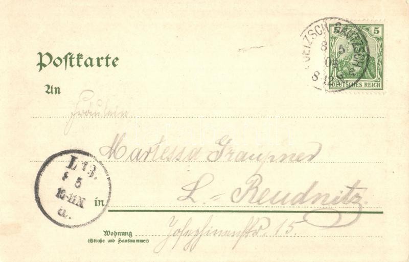 Beschreibung: Gautzsch bei Leipzig, Waldrestaurant Schloss Rheinsberg / forest restaurant, interior, Bruno Bürger & Ottillie No. 3644. Art Nouveau, litho