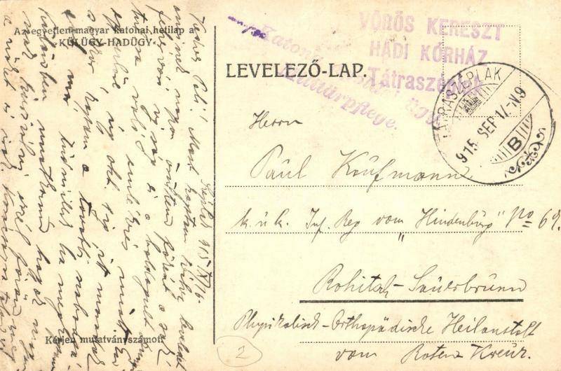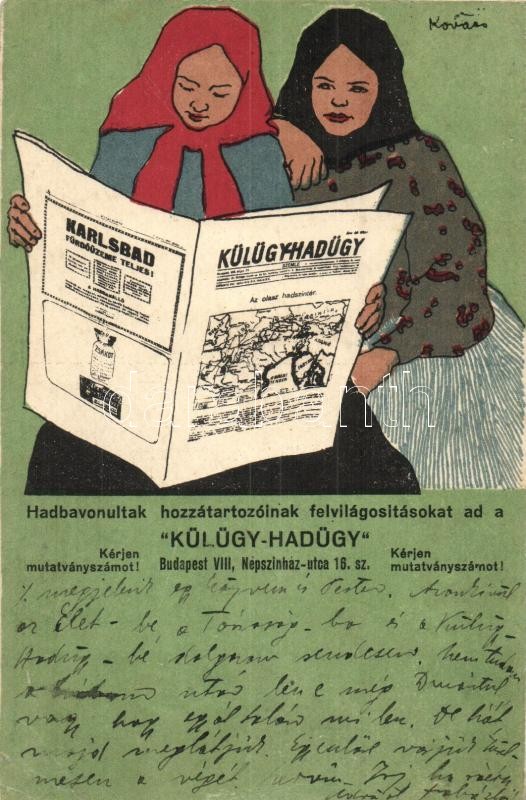 Külügy-Hadügy egyetlen magyar katonai hetilap reklámlapja. Budapest Népszínház utca 16. / Hungarian military newspaper advertisement s: Kovács + Vörös Kereszt Hadikórház Tátraszéplak (EK)