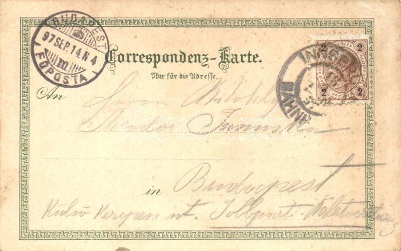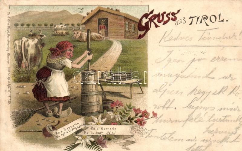 Beschreibung: 1897 (Vorläufer!) Tirol, Gruss aus... / humorous mocking art postcard. Carl Otto Hayd floral, litho (Rb)