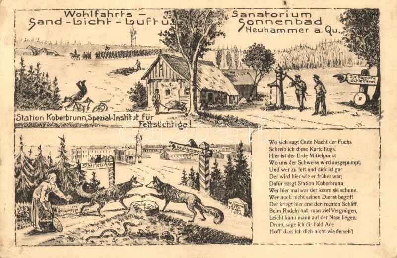 Beschreibung: Swietoszów, Neuhammer am Queis; Wohlfahrts Sanatorium, Sand-, Licht-, Luft- und Sonnenbad, Station Koberbrunn / spa advertisement card