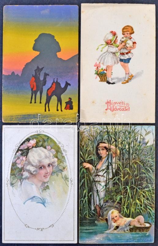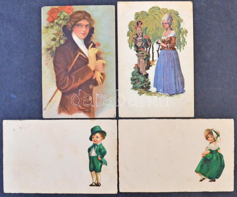 Hölgyek, párok, gyerekek: 89 db művészeti képeslap a 20-as évekből / Ladies, couples, children, 89 art postcards from the 1920-es