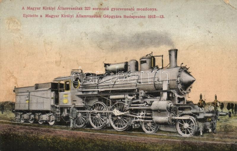 A Magyar Királyi Államvasutak 327. sorozatú gyorsvonatú mozdonya 1912-... https://www.darabanth.com/de/28-Gross-Auktion/28.1/Ansichtskarten/Schienenverkehr~11389/A-Magyar-Kiralyi-Allamvasutak-327-sorozatu-gyorsvonatu-mozdonya-1912-13-A-Gozmozdony-kiadasa~II1686515