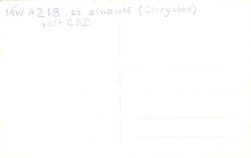 MÁV A218-as számú Chrysler típusú sínautó (pályakocsi) / Hungarian rai... https://www.darabanth.com/de/28-Gross-Auktion/28.1/Ansichtskarten/Schienenverkehr~11389/MAV-A218-as-szamu-Chrysler-tipusu-sinauto-palyakocsi-Hungarian-rail-car-photo~II1686833