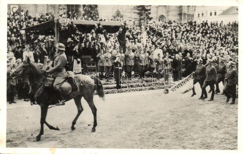 Beschreibung: 1940 Kolozsvár, Cluj; bevonulás, Horthy Miklós, Purgly Magdolna / entry of the Hungarian troops + M. kir. 107. honvéd utászszázad parancsnokság (EK)