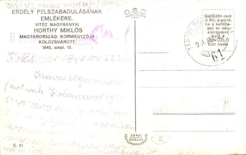 1940 Kolozsvár, Cluj; bevonulás, Horthy Miklós, Purgly Magdolna / entr... https://www.darabanth.com/de/28-Gross-Auktion/28.1/Ansichtskarten/Siebenburgen~11304/1940-Kolozsvar-Cluj-bevonulas-Horthy-Miklos-Purgly-Magdolna-entry-of-the-Hungarian-troops-plus~II1680292