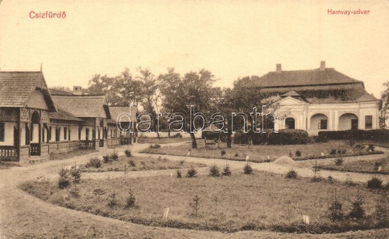 Csízfürdő, Kúpele Ciz; Hamvay udvar / villa park https://www.darabanth.com/de/28-Gross-Auktion/28.1/Ansichtskarten/Slowakei~11305/Csizfurdo-Kupele-Ciz-Hamvay-udvar-villa-park~II1686933