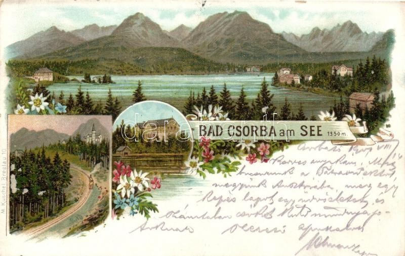 Tátra, Csorba-tó / Csorba am See. M. Kuschel. Floral, litho https://www.darabanth.com/de/28-Gross-Auktion/28.1/Ansichtskarten/Slowakei~11305/Tatra-Csorba-to-Csorba-am-See-M-Kuschel-Floral-litho~II1686944