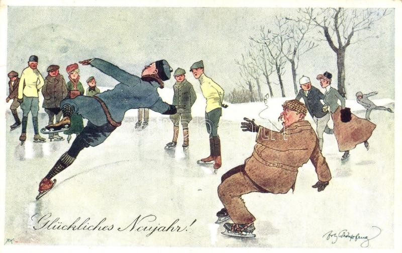 Beschreibung: Glückliches Neujahr! / Ice skating. B.K.W.I. 556-4. s: Fritz Schönpflug
