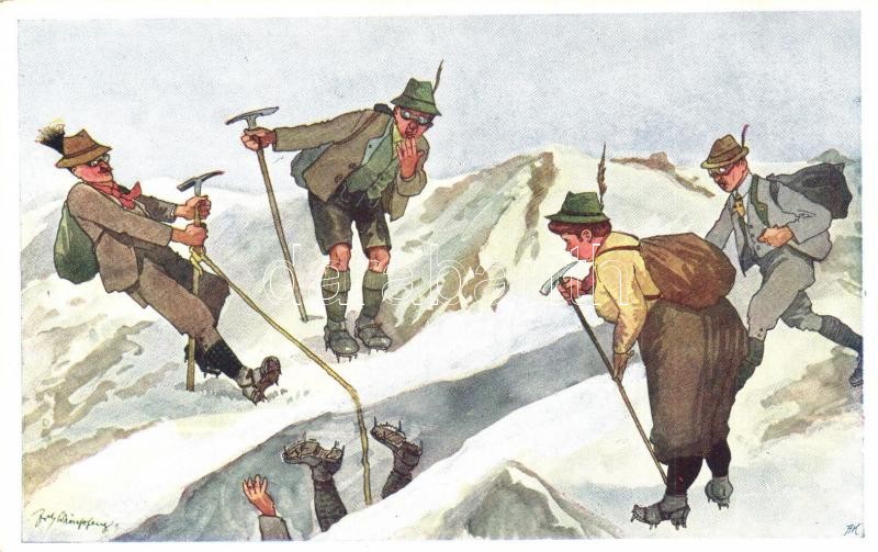 Mountain climbing. B.K.W.I. 717-6. s: Fritz Schönpflug https://www.darabanth.com/de/28-Gross-Auktion/28.1/Ansichtskarten/Sport~11380/Mountain-climbing-BKWI-717-6-s-Fritz-Schonpflug~II1686074
