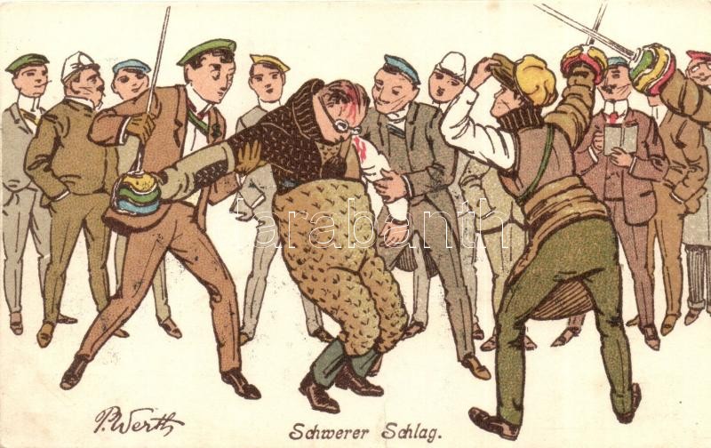 Schwerer Schlag / Studentica. German University Mensur academic fencin... https://www.darabanth.com/de/28-Gross-Auktion/28.1/Ansichtskarten/Sport~11380/Schwerer-Schlag-Studentica-German-University-Mensur-academic-fencing-HSM-Serie-800-s-P-Wer~II1685760