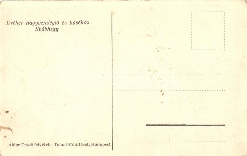 Budapest XII. Svábhegy, Tornyos Antal Dréher nagyvendéglője, kávéház, ... https://www.darabanth.com/de/28-Gross-Auktion/28.1/Ansichtskarten/Ungarn~11303/Budapest-XII-Svabhegy-Tornyos-Antal-Dreher-nagyvendegloje-kavehaz-Aldor-Dezso-felvetel~II1685999