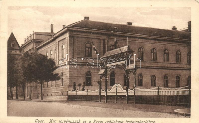 Győr, Kir. törvényszék, Révai reáliskola testgyakorlótere https://www.darabanth.com/de/28-Gross-Auktion/28.1/Ansichtskarten/Ungarn~11303/Gyor-Kir-torvenyszek-Revai-realiskola-testgyakorlotere~II1685977