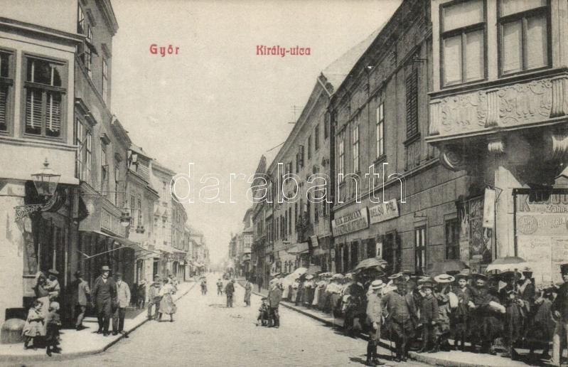 Győr, Király utca, Belső Pál, Back Hermann üzletei, reklámok a falon https://www.darabanth.com/de/28-Gross-Auktion/28.1/Ansichtskarten/Ungarn~11303/Gyor-Kiraly-utca-Belso-Pal-Back-Hermann-uzletei-reklamok-a-falon~II1679052