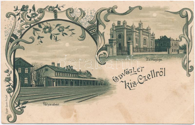 Kiscell, Zsinagóga és vasútállomás, kiadja Gayer Gyula, Art Nouveau li... https://www.darabanth.com/de/28-Gross-Auktion/28.1/Ansichtskarten/Ungarn~11303/Kiscell-Zsinagoga-es-vasutallomas-kiadja-Gayer-Gyula-Art-Nouveau-litho-EB~II246111