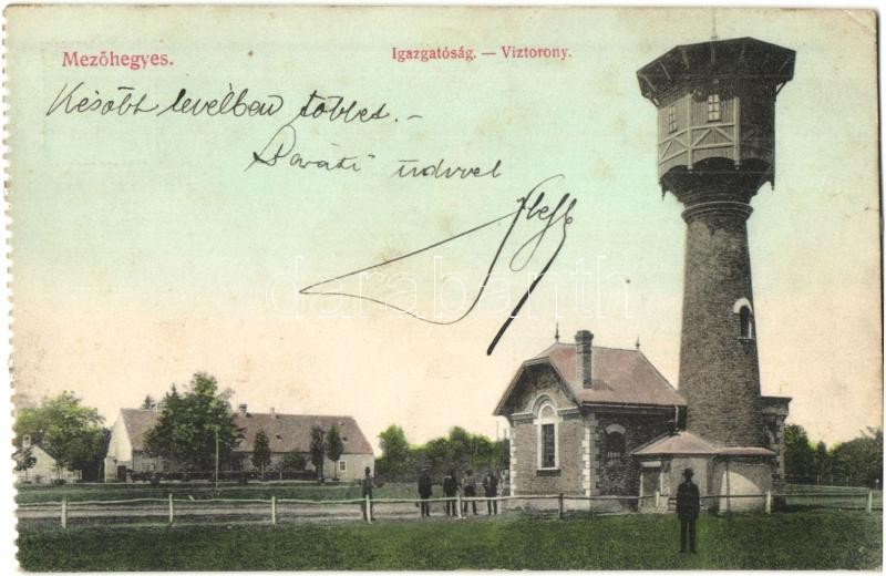 Mezőhegyes, Igazgatóság, víztorony (ferdén vágott / slant cut) https://www.darabanth.com/de/28-Gross-Auktion/28.1/Ansichtskarten/Ungarn~11303/Mezohegyes-Igazgatosag-viztorony-ferden-vagott-slant-cut~II1647664