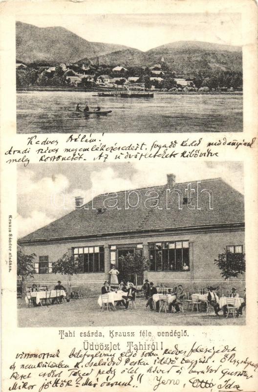 Beschreibung: Tahi, Krausz-féle vendéglő és csárda. Krausz Sándor kiadása (fa)