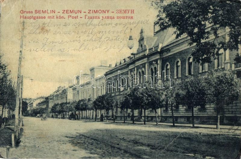 Zimony, Semlin, Zemun; Fő út, Királyi postahivatal / main street with ... https://www.darabanth.com/de/28-Gross-Auktion/28.1/Ansichtskarten/Vojvodina~11308/Zimony-Semlin-Zemun-Fo-ut-Kiralyi-postahivatal-main-street-with-post-office-23382-31-fa~II1668664