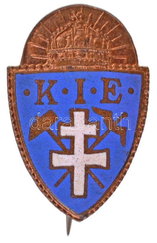 ~1930-1940. "KIE (Keresztényszocialista Ifjúsági Egylet?)" zománcozott jelvény (17x25mm) T:2 / Hungary ~1930-1940. "KIE (Christiansocialist Youth Alliance?) enamelled badge (17x25mm) C:XF