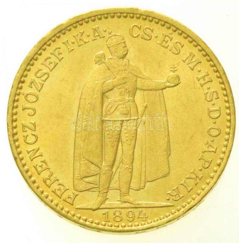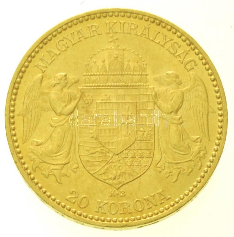 1894KB 20K Au "Ferenc József" Körmöcbánya (6,71g/0.900) T:1-,2 / Hungary 1894KB 20 Korona Au "Franz Joseph" Kremnitz (6,71g/0.900) C:AU,XF Adamo K9, Krause KM#486