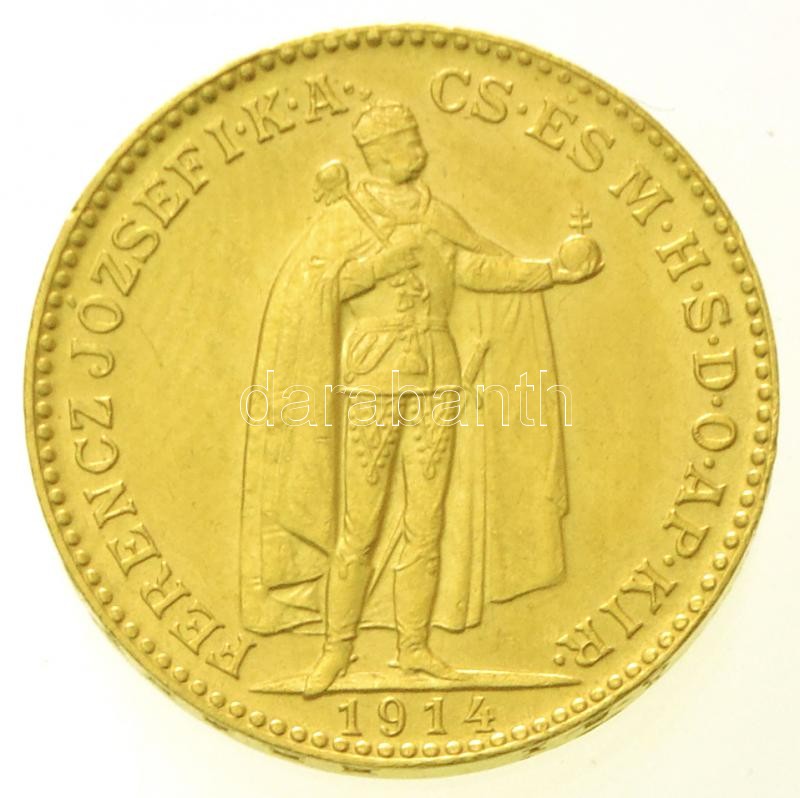 1914KB 20K Au "Ferenc József" Körmöcbánya. Bosznia címerrel (6,77g/0.900) T:1-,2 / Hungary 1914KB 20 Korona Au "Franz Joseph" Kremnitz. With Bosnia Coat of Arms (6,77g/0.900) C:AU,XF