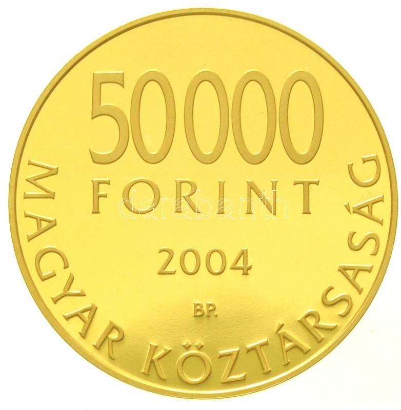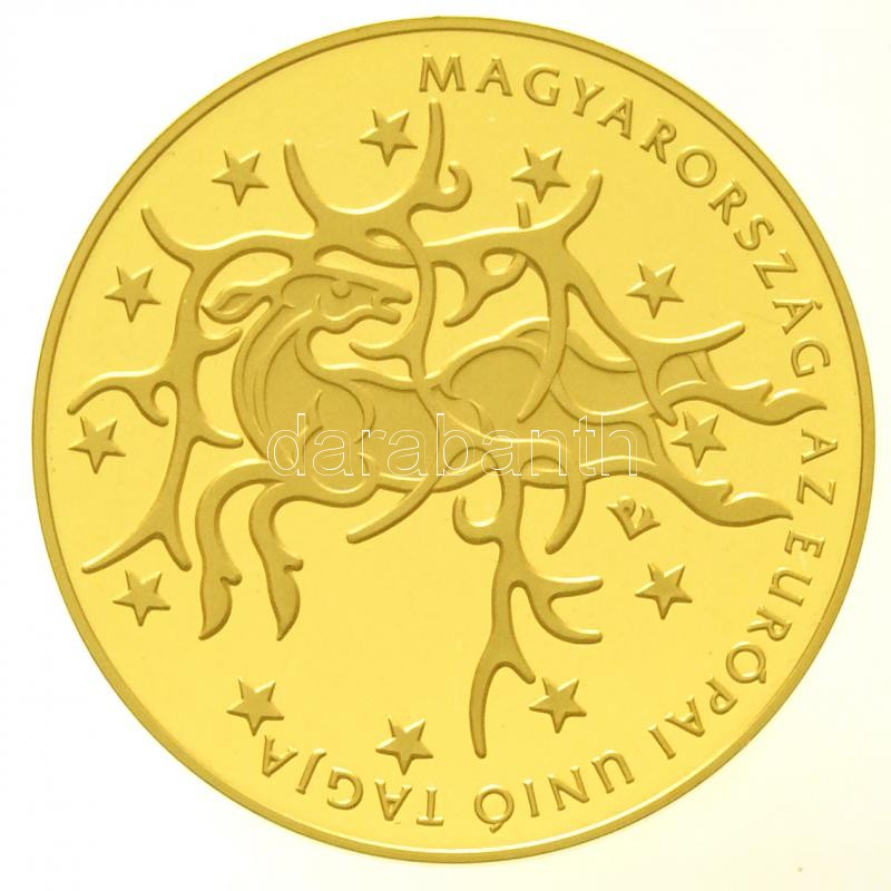 2004. 50.000Ft Au "Magyarország az Európai Unió tagja" tanúsítvánnyal (13,96g/0.986) T:PP / Hungary 2004. 50.000 Forint Au "Hungary becomes a member of the European Union" with certificate (13,96g/0.986) C:PP