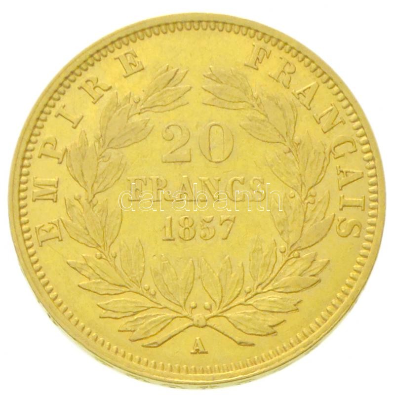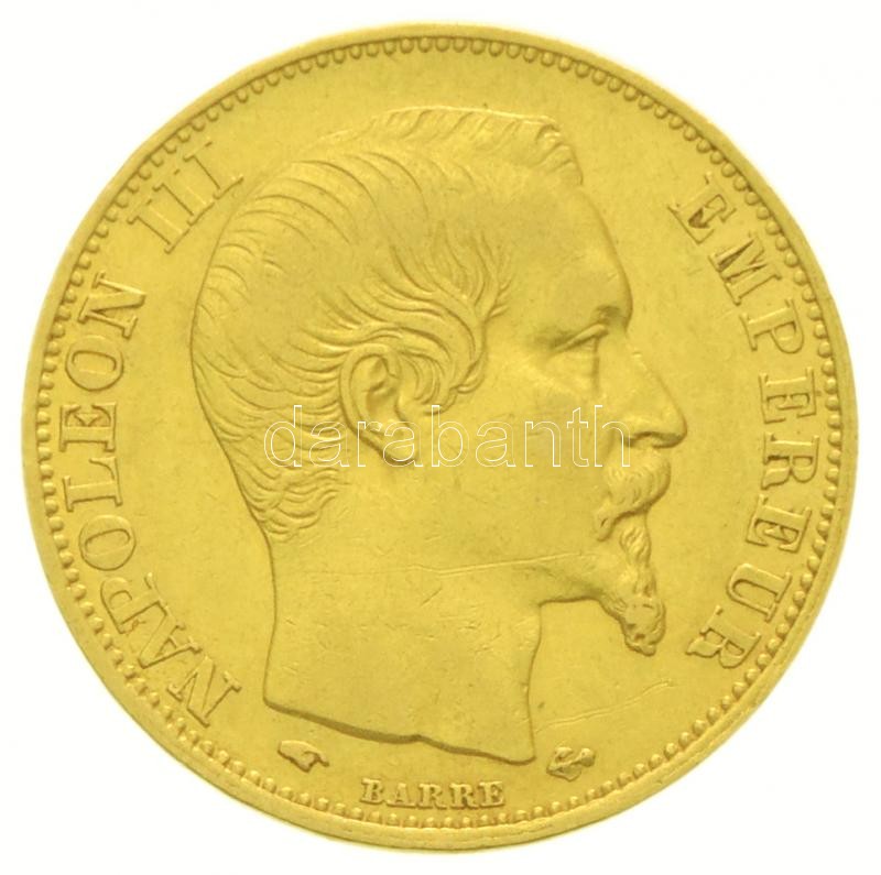 Franciaország / Második Császárság 1857A 20Fr Au "III. Napóleon" (6,47g/0.900) T:2,2- kis ph., karc / France / Second Empire 1857A 20 Francs Au "Napoleon III" (6,47g/0.900) C:XF,VF small edge error, scratched Krause KM#781.1