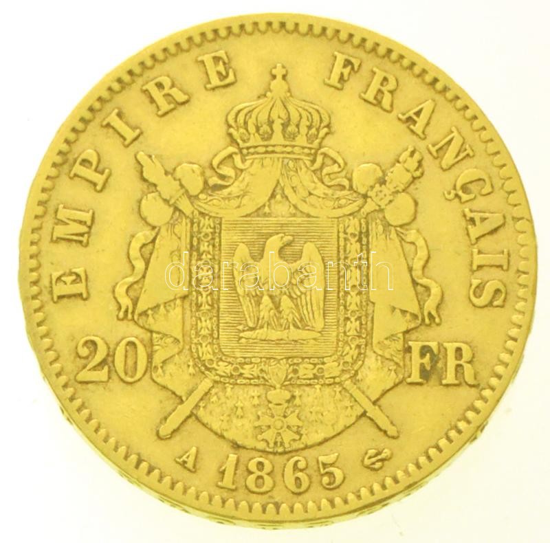 Franciaország / Második Császárság 1865A 20Fr Au "III. Napóleon" (6,43g/0.900) T:2,2- kis ph.