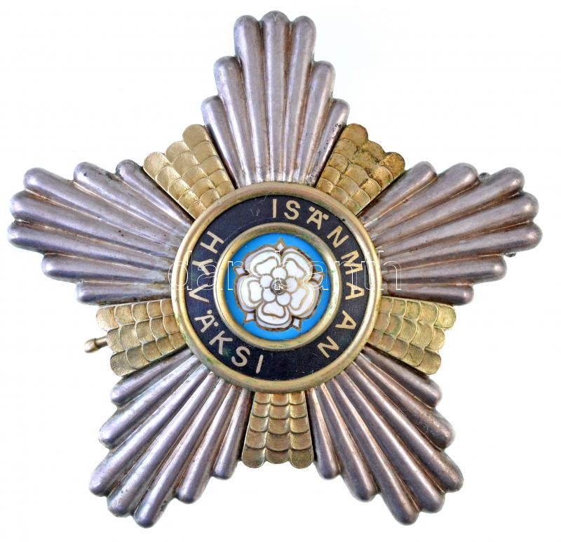 Finnország ~1925. "Fehér Rózsa Lovagrend Nagykeresztjének csillaga" zománcozott, jelzett Ag csillag, függőleges tűvel, a csillag hátoldalán "A.T." gyártói jelzés, mellette ezüstjelzések (85x86mm) T:2 /