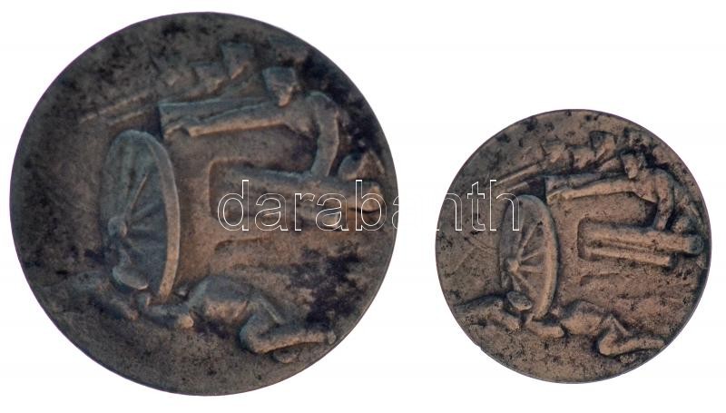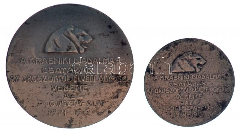Murányi Gyula (1881-1920) 1915. "A Krasniki diadalmas csatában az oroszoktól elvett ágyúból verette az Auguszta-Alap" Fe emlékérem (2x) (29,5mm és 21,5mm) T:2 oxidáció / Hungary 1915. "Commemorative Medal for the Victory at Krasnik" Fe commemorative medallion (2x) Sign.: Gyula Murányi (29,5mm and 21,5mm) C:XF corrosion