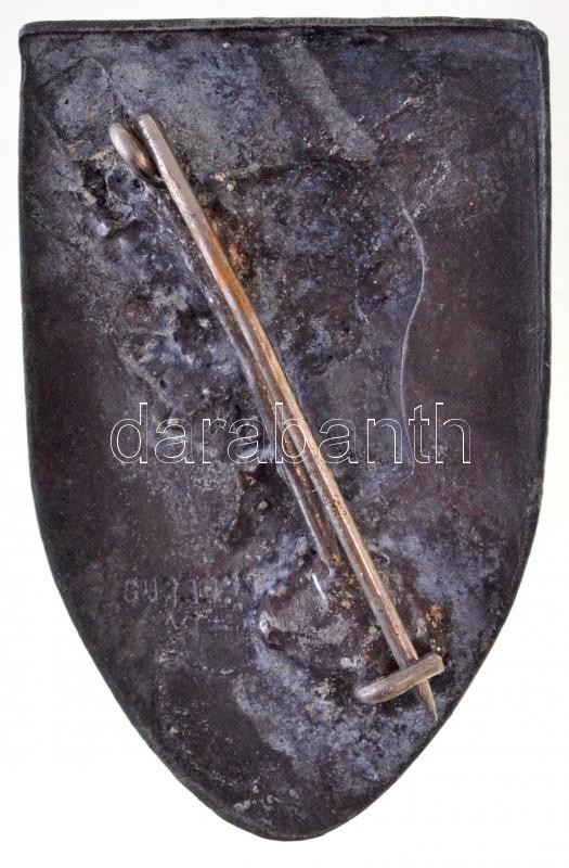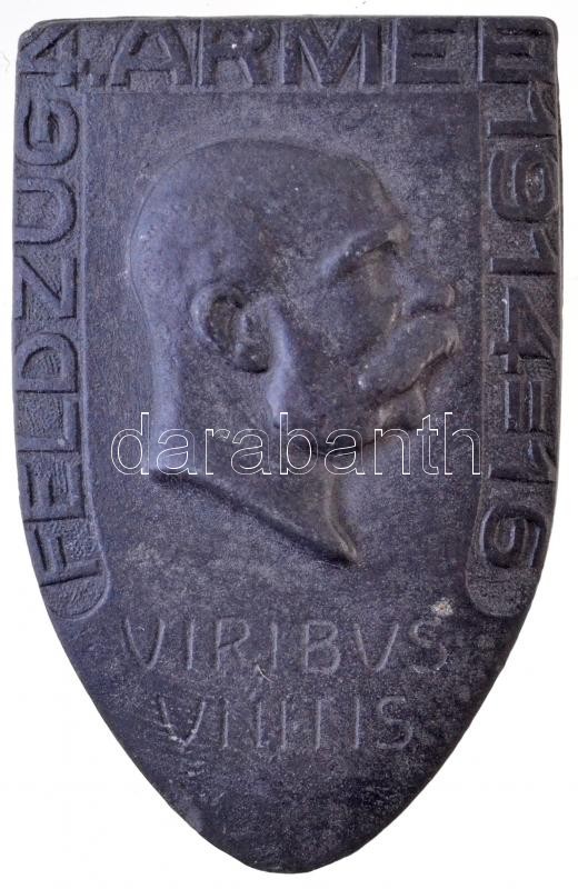 Osztrák-Magyar Monarchia 1915. "4. Hadsereg hadjárata 1914-15" Zn sapkajelvény hátoldalon "GURSCHNER WIEN" gyártói jelzéssel (38,5x25mm) T:2,2- cserélt tű / Austro-Hungarian Monarchy 1915. "Feldzug 4. Armee 1914-15 - Viribus Unitis (Expedition of the 4th Army)" Zn cap badge with makers mark "GURSCHNER WIEN" on the back (38,5x25mm) C:XF,VF replaced needle