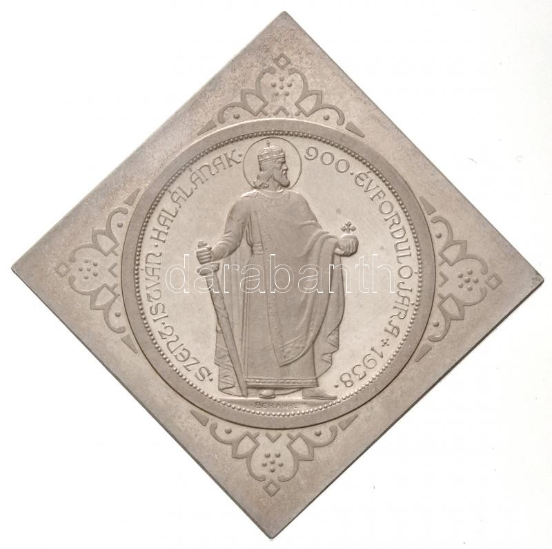 1938. 5P csegely Ag "Szent István halálának 900. évfordulója" próbaveret U.P. jelzéssel (50,05g/45mm) T:1,1-(P) /